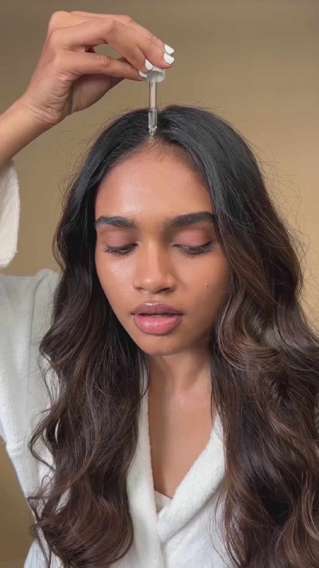 1. Appliquer 2 à 3 pipettes sur cuir chevelu sec ou humide, raie par raie.